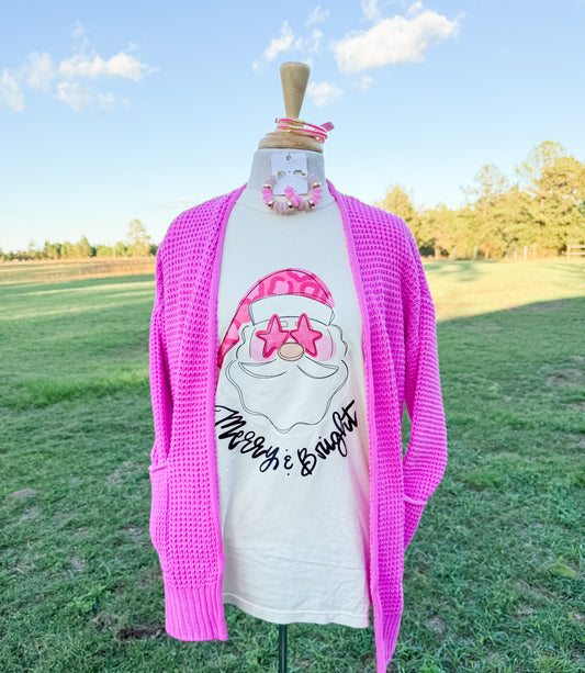 Curvy Cozy Me Up Cardigan in Fuschia