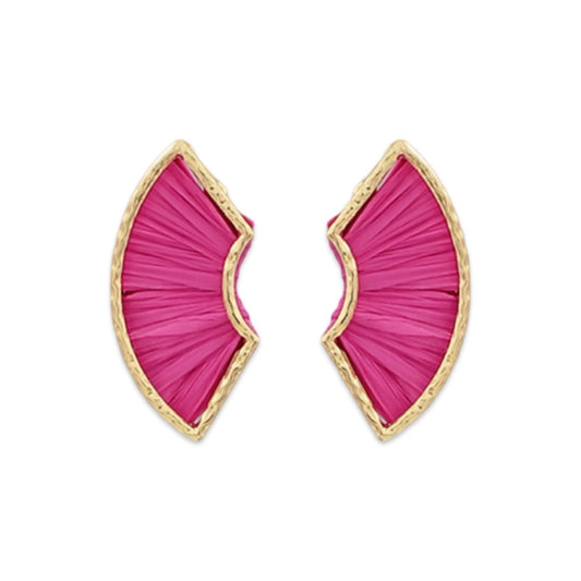 Fuschia Raffia Fan Earrings
