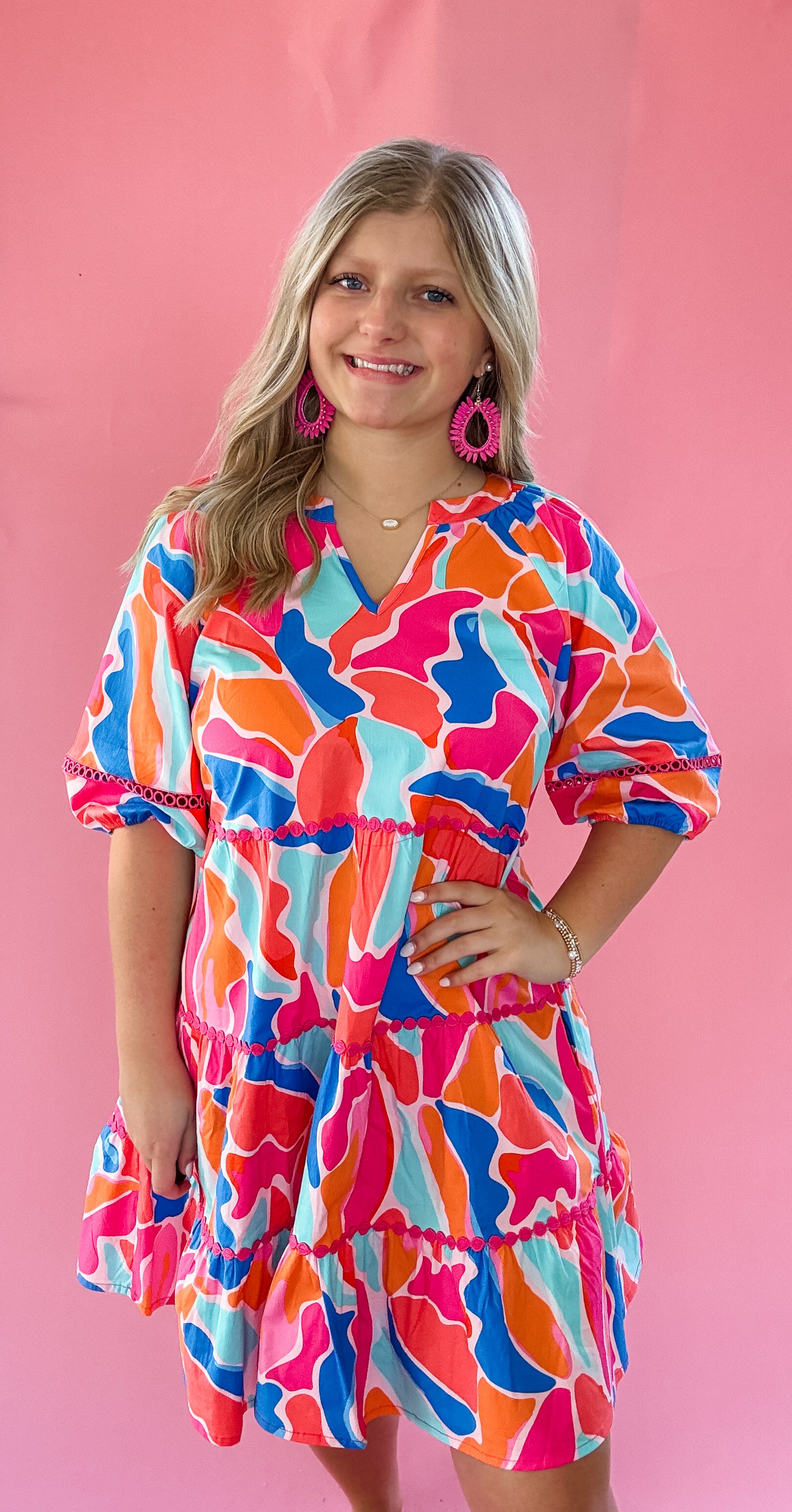 Introducing the Palmer Dress – a captivating blend of classic and contemporary. With its tiered skirt for graceful movement, exquisite dot trim embroidery for added flair, and playful short puff sleeves, this dress is your ticket to timeless elegance with a modern twist.