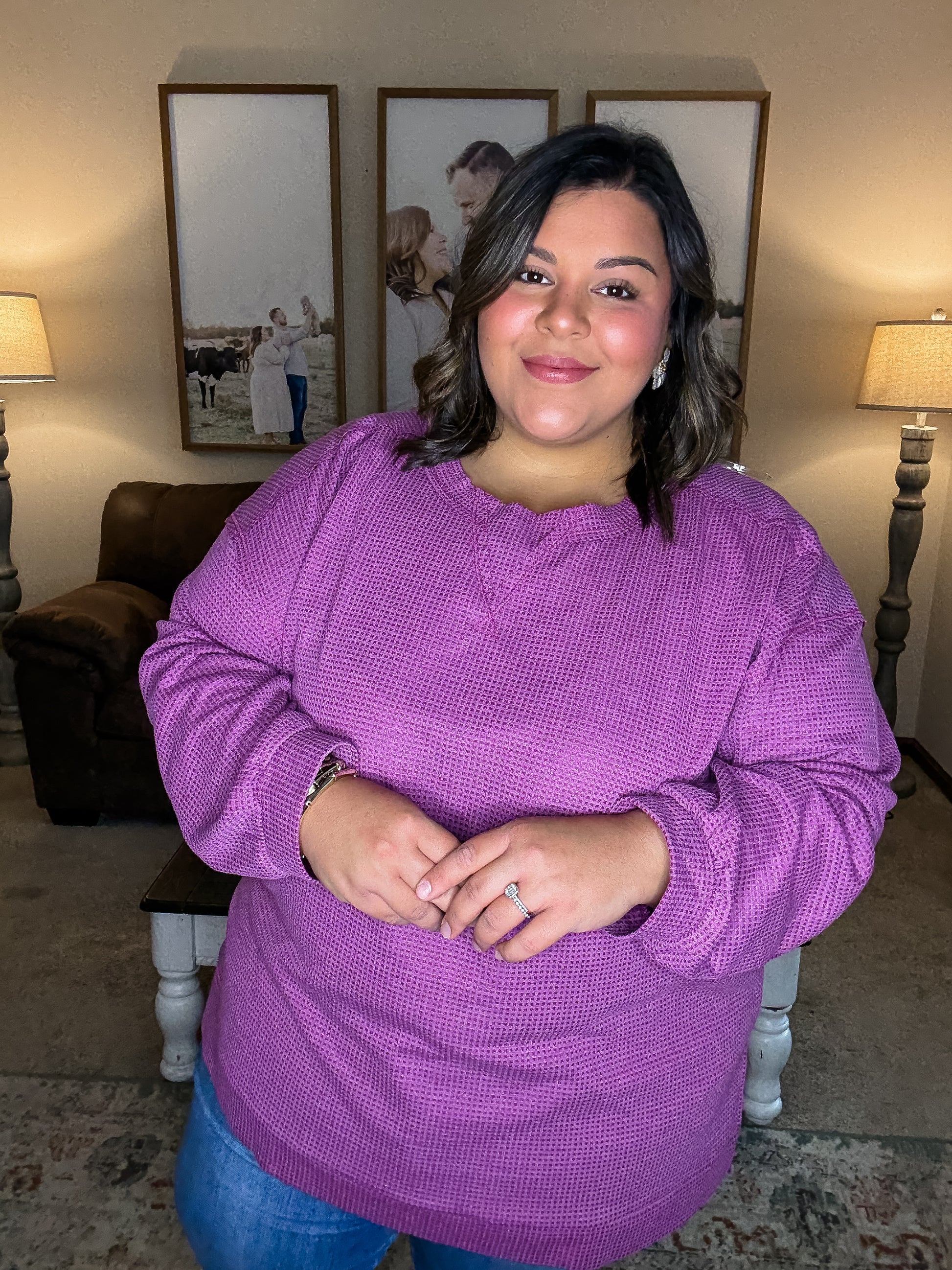 Upgrade your wardrobe with our On the Move Top in Magenta. Our oversized design creates a relaxed look while the waffle knit adds texture. The tunic style provides comfort and versatility to take you from work to play.