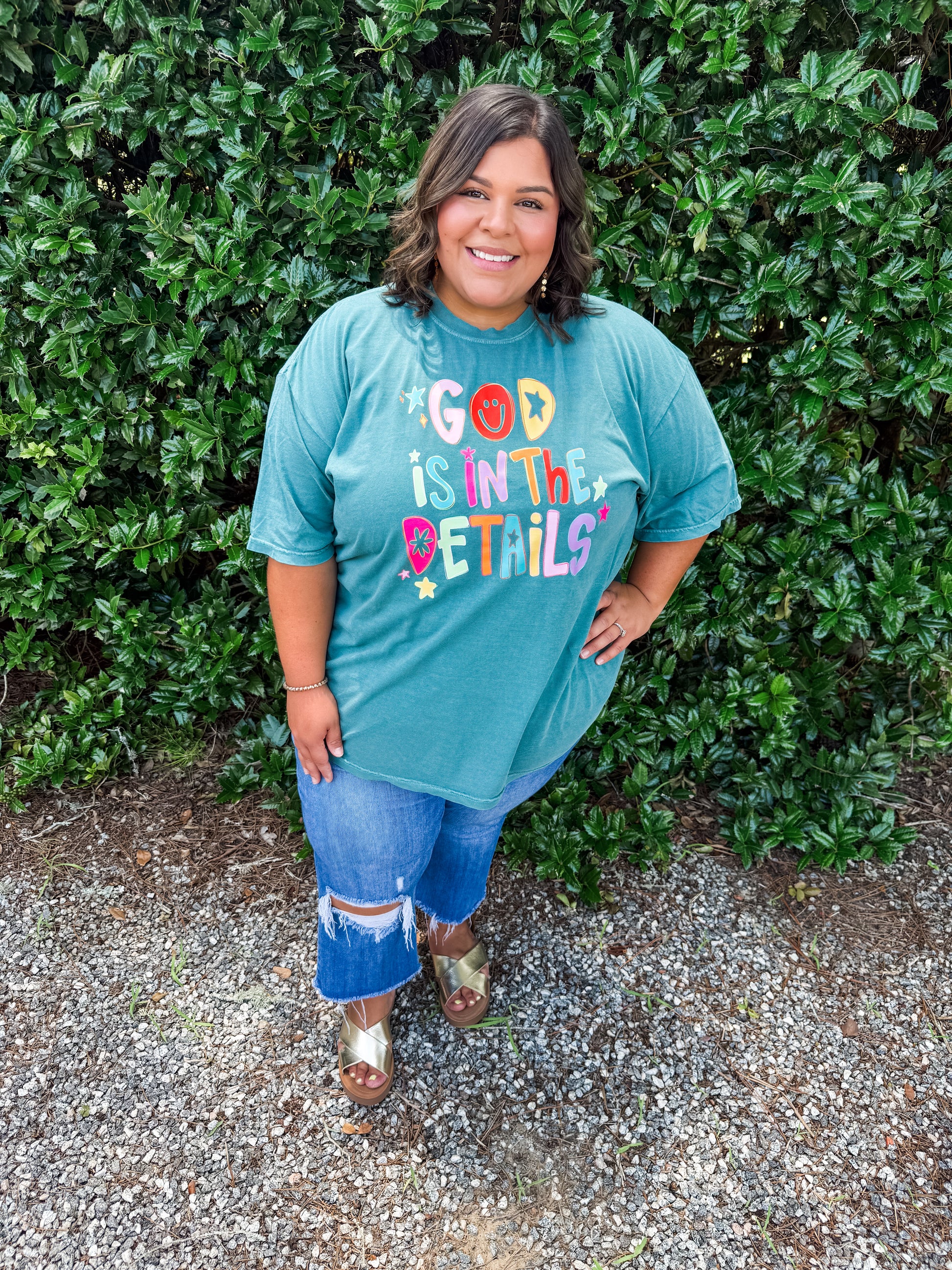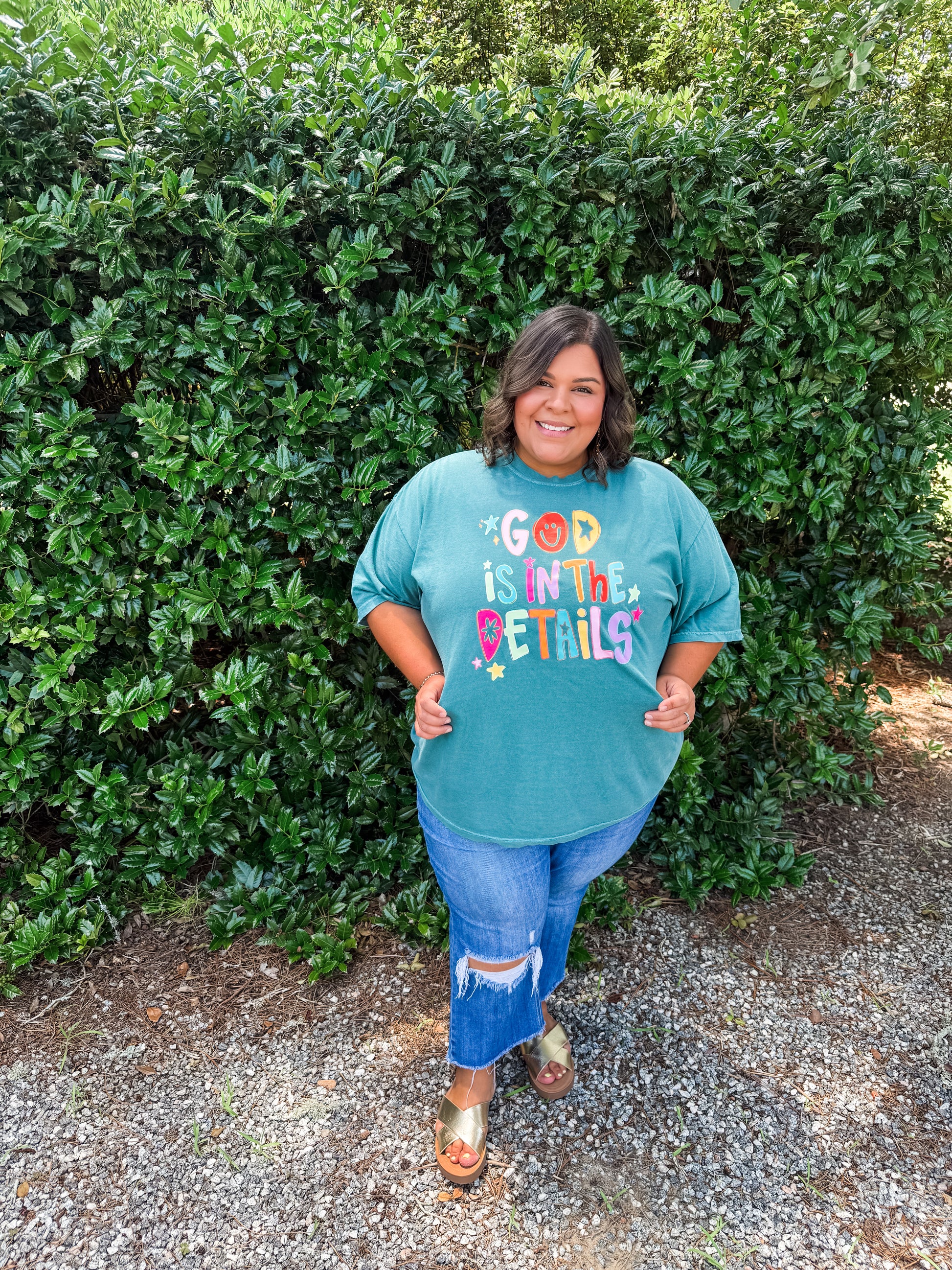 Introducing our God Is In the Details Tee, featuring a charming graphic design and trendy style. Made with a comfort color tee, this shirt is perfect for those who appreciate the little things in life. Order now and let your outfit make a statement.